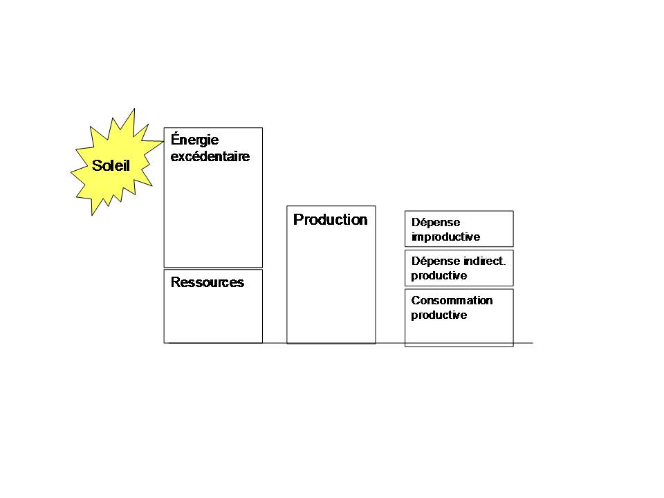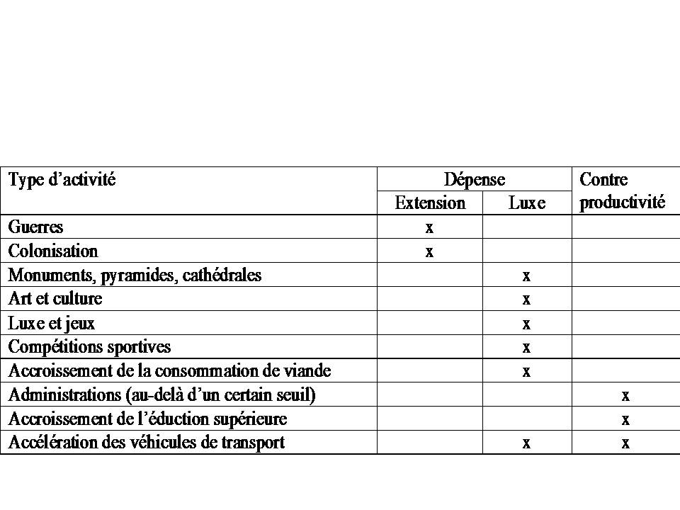 La croissance est donc une autre façon de contrôler la population, et les deux se rejoignent : dépense improductive ou croissance improductive, c’est sensiblement la même chose. L’enjeu aujourd’hui qui est de diminuer la consommation des ressources naturelles, donc la croissance de la production de biens, touche les deux parties de la consommation : la dépense improductive et une partie de la consommation productive ou considérée comme telle : alimentation, logement par exemple.